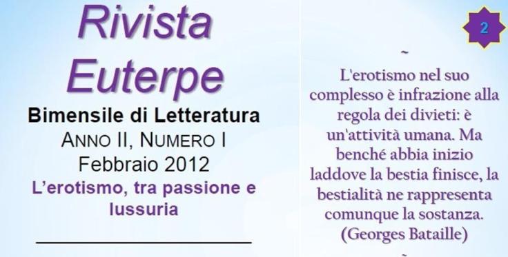 E’ uscito il secondo numero a tema “L’erotismo: tra passione e lussuria” raccoglie poesie, racconti, saggi, recensioni, interviste ed altri testi critici, oltre a varie segnalazioni.